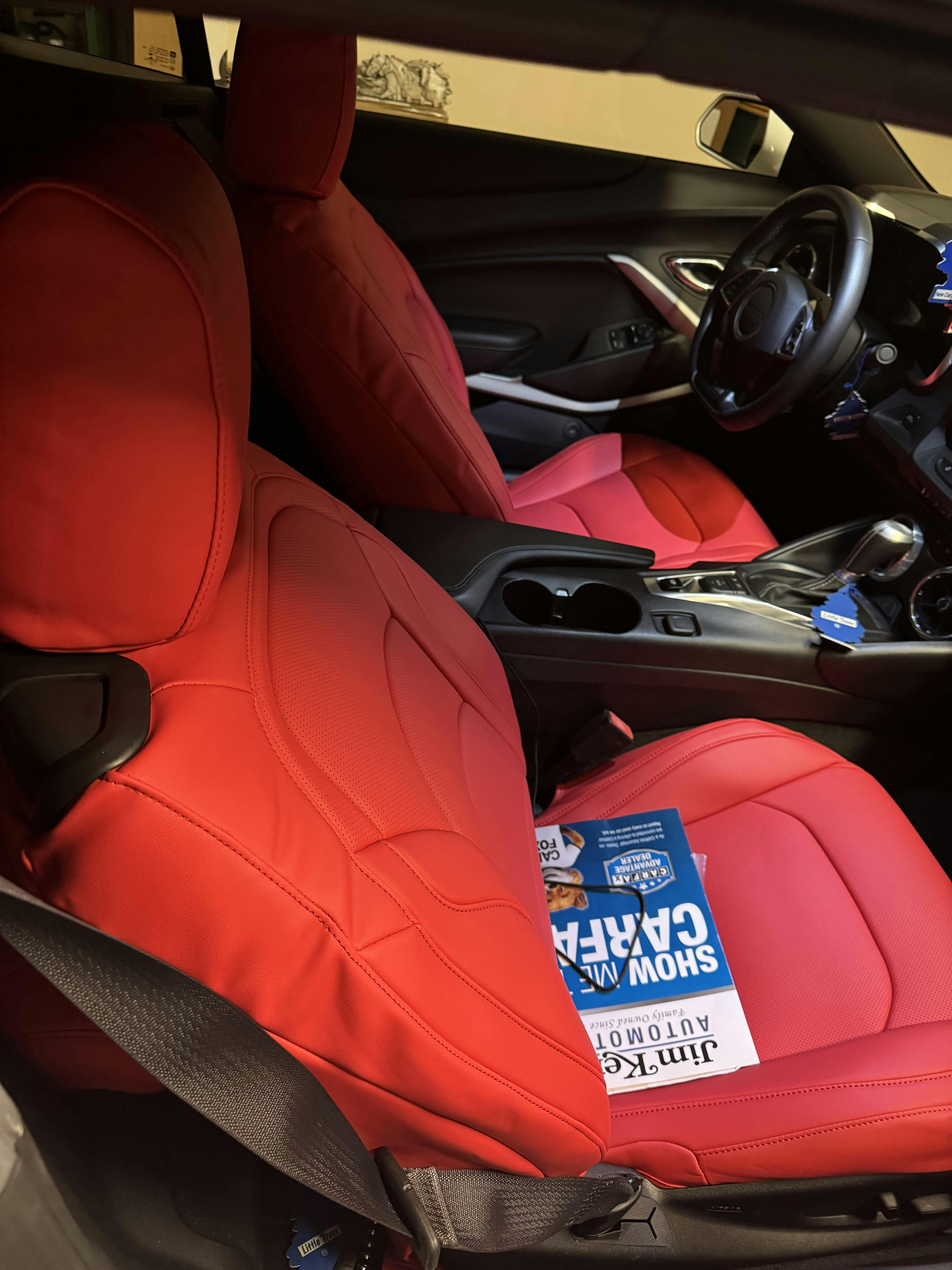 This 2020 Camaro RS looks fantastic! I only installed the front seats, and they fit perfectly! There's no odor. Excellent quality, highly recommended.