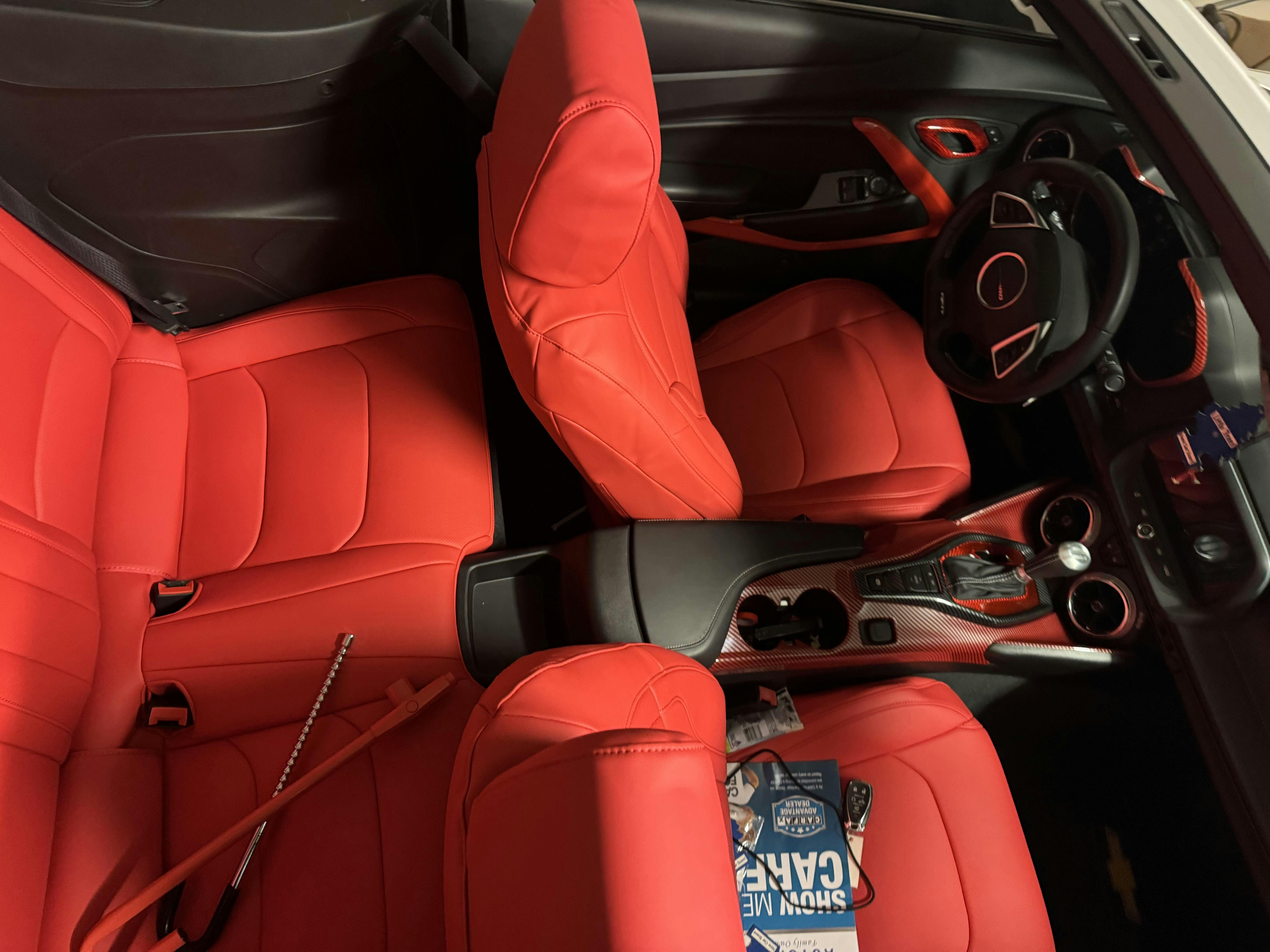 Realza el interior de tu Chevrolet Camaro con nuestras fundas de asiento personalizadas de primera calidad. Diseñadas específicamente para el Camaro, estas fundas de asiento ofrecen un ajuste perfecto, una protección superior y una estética mejorada que complementa el diseño deportivo de tu vehículo. El producto admite la personalización, los clientes pueden personalizar cualquier combinación de colores.